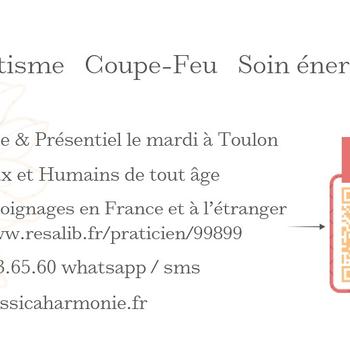 Je suis Jessica, magnétiseuse énergéticienne, installée à Six-Fours-Les-Plages dans le VAR. Je propose mes séances en présentiel le mardi, dans le centre ville de Toulon, et à distance les autres jours, pour les animaux et les humains de tout âge, en France comme à l'étranger. - Ma pratique ne repose sur aucune croyance, uniquement sur mes ressentis corporels et intuitifs. - Il est important de comprendre que dans l'énergétique, il n'y a pas de règles fixes concernant les résultats. Les soins ne sont ni magiques ni instantanés. Chaque personne est unique et réagit différemment selon son histoire, sa réceptivité et son engagement dans le processus de guérison. Certaines ressentent une amélioration dès la première séance, d’autres après plusieurs pour percevoir des effets. Il peut arriver que certaines personnes soient trop avancées dans leurs problématiques, rendant le processus de guérison plus complexe et parfois, je ne suis tout simplement pas la bonne praticienne pour la personne à ce moment-là. (lire FAQ sur mon site) - Au plaisir de vous accompagner si cela résonne pour vous. Jessica
