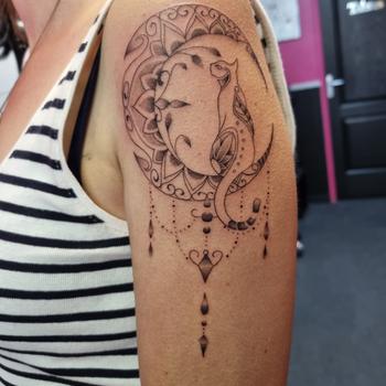 Depuis 2013, ma femme et moi avons ouvert notre salon de tatouage, une aventure qu'on vit à deux depuis toujours. Travailler ensemble, c’est une vraie complicité : on fusionne nos talents pour créer des tatouages uniques qui racontent l’histoire de chaque client. Pour nous, chaque projet est une collaboration, et c’est ce qui fait la force de notre travail. Si tu cherches un tatouage personnalisé, avec de l’art et de l’émotion, on t’accueille ici avec plaisir. Venez découvrir notre univers !