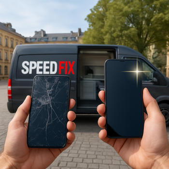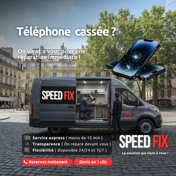 SPEEDFIX Réparation Smartphone à Domicile Atelier mobile professionnel basé à Argenteuil et intervenant dans toute l'Île-de-France. Nous réparons votre téléphone directement dans notre véhicule aménagé devant votre domicile ou votre bureau. Notre concept repose sur une transparence totale car nous effectuons la réparation sous vos yeux. Cela garantit la sécurité absolue de vos données personnelles. Nous sommes disponibles sept jours sur sept et vingt-quatre heures sur vingt-quatre pour vos urgences nocturnes, peu importe la météo. Changement d'écran ou de batterie en vingt minutes chrono avec des pièces de haute qualité. Notre sérieux est validé par une note de cinq sur cinq et nous mettons un point d'honneur à votre satisfaction. Cliquez sur le bouton d'appel pour une intervention immédiate.
