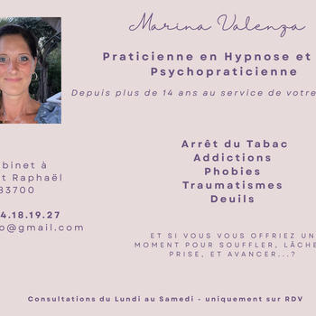 Après avoir passé dix sept ans dans le milieu médical auprès de médecins et pharmaciens, je suis devenue psychopraticienne. et suis depuis plus de quatorze ans, spécialisée en hypnose et PNL dans l'arrêt du tabac, des addictions, des phobies et des traumatismes émotionnels.